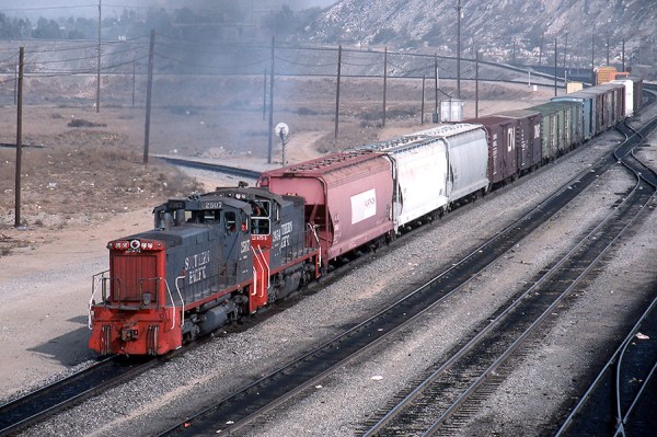 The ascending track in the background is the Palmdale Cut-Off, completed in 1967, which permits traffic to and from Northern California to avoid the congestion of the LA basin.