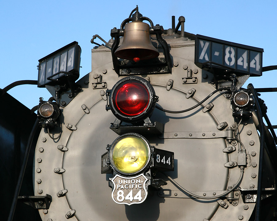 I really like the way the soft morning light comes in at just the right angle to highlight the details on the face of UP 4-8-4 844. You can, if you’re inclined to, actually count the bolts.