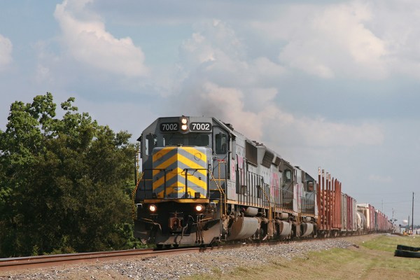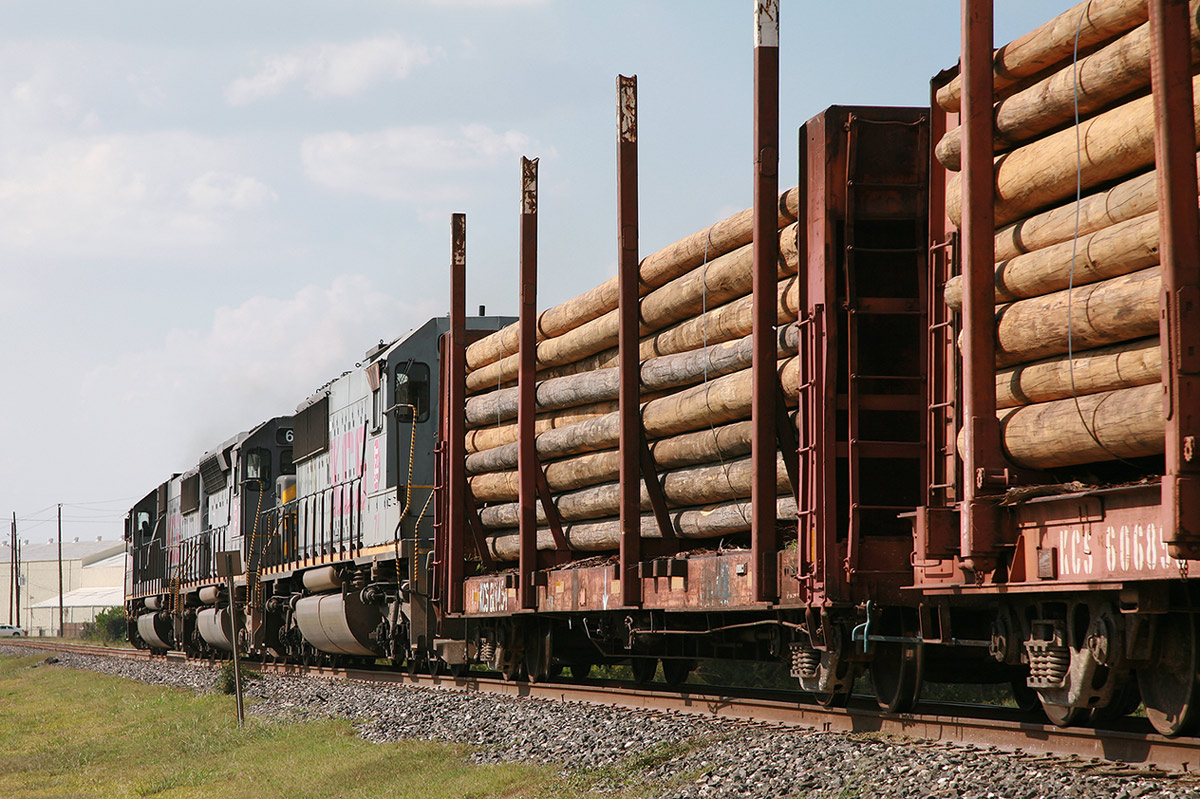 I’ve seen plenty of bulkhead flatcars, but I can’t say I’ve ever seen them modified with stakes, much less stakes that are a good 2-3 feet taller than the bulkhead. I’m guessing that the KCS modified the cars to permit the loading of timbers lengthwise.