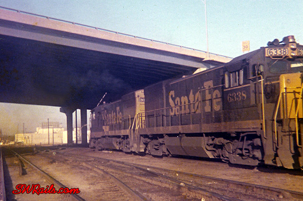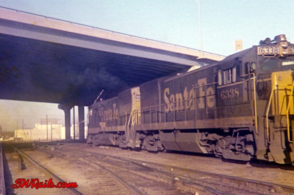 The overpass was under construction in the summer of ’63 when I worked for Santa Fe as summer time replacement on extra board for switchmen. In the summer of ’62 In worked for FRISCO in Birmingham and Oklahoma City as fireman and worked with the first U25Bs. The first short hood U25Bs were shipped to Birmingham, Ala. from the manufactures plant to save on taxes. We left Birmingham with 11 locomotives at the head of train the head of motive power for FRISCO and a factory representative rode in the freshly commissioned locomotives.
