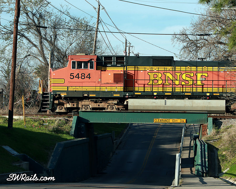 The 5484 is approaching the Tower 30 interlocking (The Katy Neck), where the dispatcher can line northbound trains to continue north via the Strang sub, southeast or northwest on the Galveston sub, or southwest on the Glidden sub.