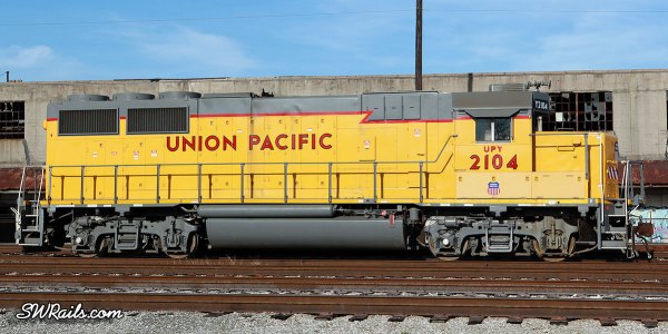 After driving a bit, I came across the switcher that UP leaves at the west end of Booth Yard. UPY 2104 was available for a broadside view: