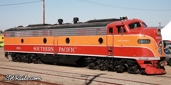 SP E9A 6051 received its first application of classic “Daylight” colors when it was built in December 1954. It entered service at Los Angeles in January 1955.