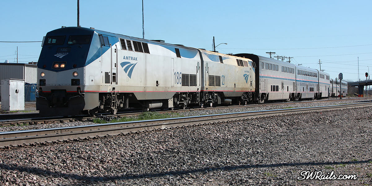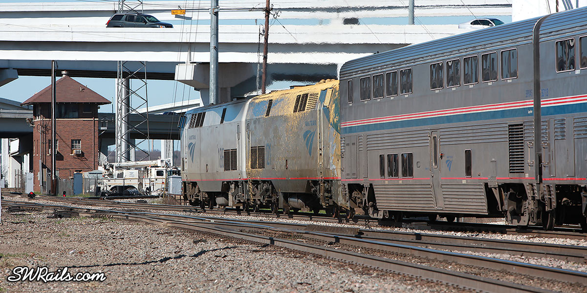 The radio advised us that the Texas Eagle was getting ready to depart, so we headed to the Tower 55 area to see if we could get some shots of it as it departed.