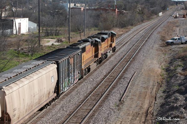 Now that Amtrak was out of the way, a SB UP manifest was next up. We re-located to the Hattie Street overpass, about 1/4 mile to the south.