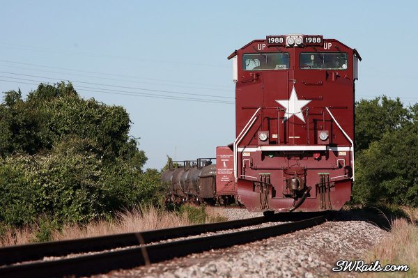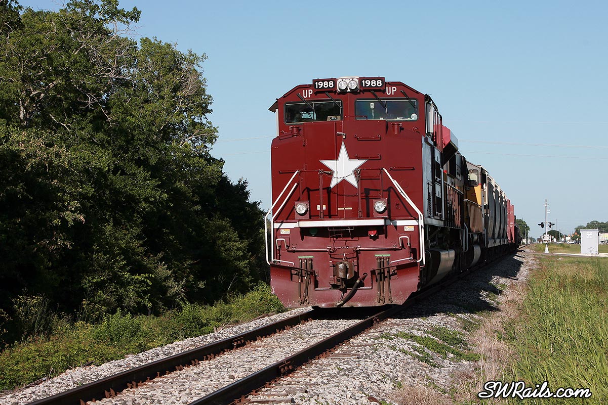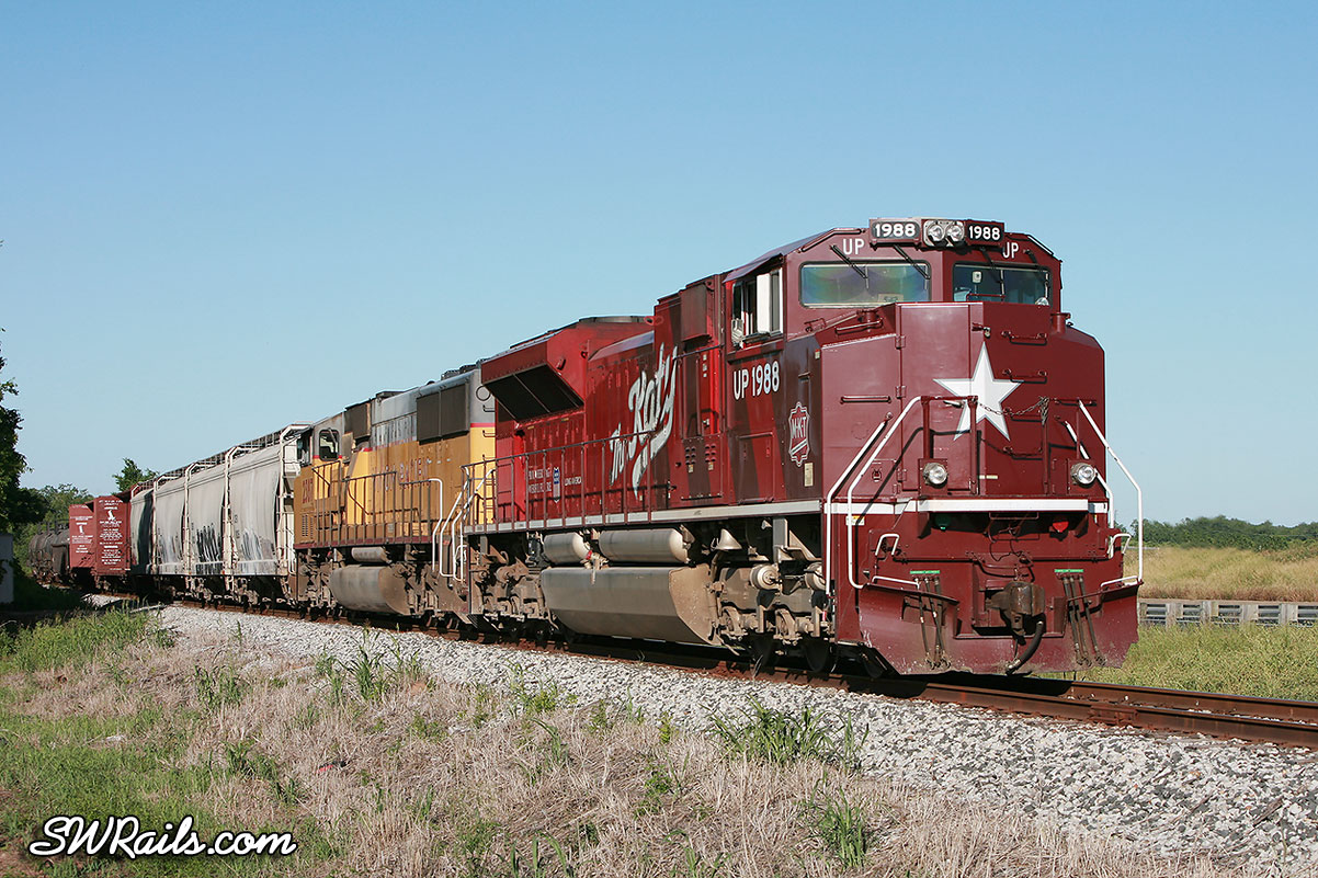 UP SD70ACE 1988, the Katy Heritage commemorative locomotive, was the lead unit on the LAK71, the northbound Katy, TX – Smithville, TX local this past Wednesday, May 5, 2010.