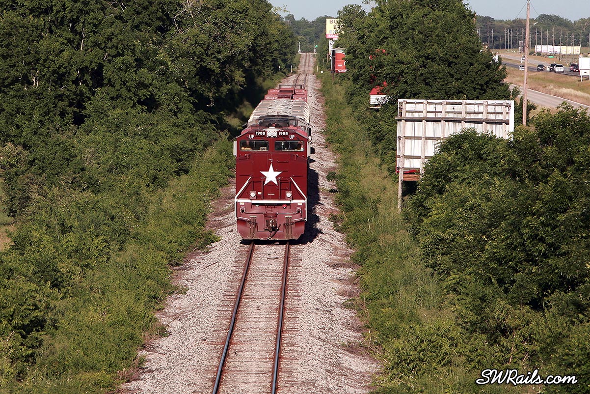 The Katy local works 6 days/week serving clients along what had been the MKT mainline. In 1998, the UP sold the right-of-way east of Katy to TX DOT for the expansion of I-10. What had been a main line became the Sealy Industrial Lead, a 21.6 mile long spur.
