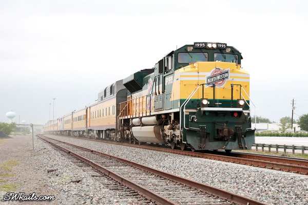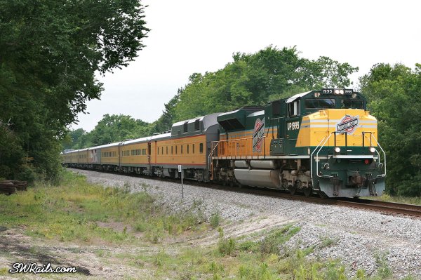 Perhaps symbolic of Mr. Wimmer’s retirement promotion to VP-Operations in 2008, the 6936 is not pulling the Engineering Dept. special this year. Powering the train this year is UP 1995, the C&NW Heritage locomotive.