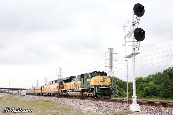 Union Pacific’s Engineering Dept. Passenger Special is out and about again. It came into Houston yesterday. Symboled SNLHO-09, it departed North Little Rock at 6 AM. Its 450 mile run took it through Texarkana, Marshall, Longview and Palestine en route to Houston.