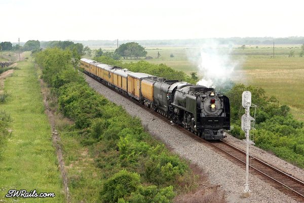 In a very classy move, the train made an un-scheduled stop in the small town of Sweeny. The dispatcher received a call from a UP employee that lived in Sweeny.  He called to see if the train could stop in Sweeny because some of his fellow residents were hoping to see the “steam train”.