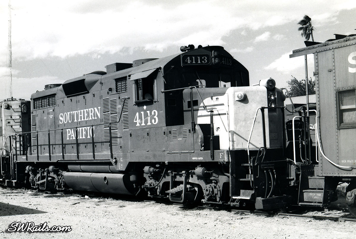 With McAllen being the end of the line for the SP in the Valley, 3 units was a good catch. The 3326 and 4113 came in on the road freight from Alice. In the background is GP9E 3762 which was holding down switching duties in McAllen. Photos taken in May, 1978, before SP abandoned its line from Victoria to the Valley in favor of MP trackage rights from Placedo to Harlingen.