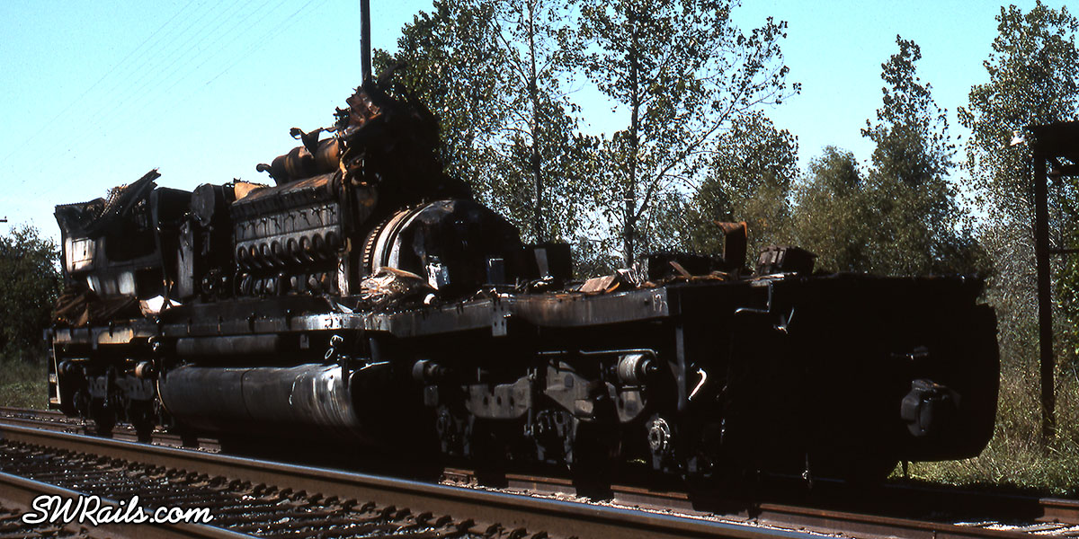 The remains of the 8513 were dragged to this set-out track about a mile west of the collision site. It was scrapped at this location several weeks after the photo was taken.
