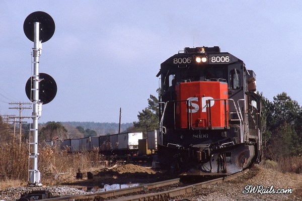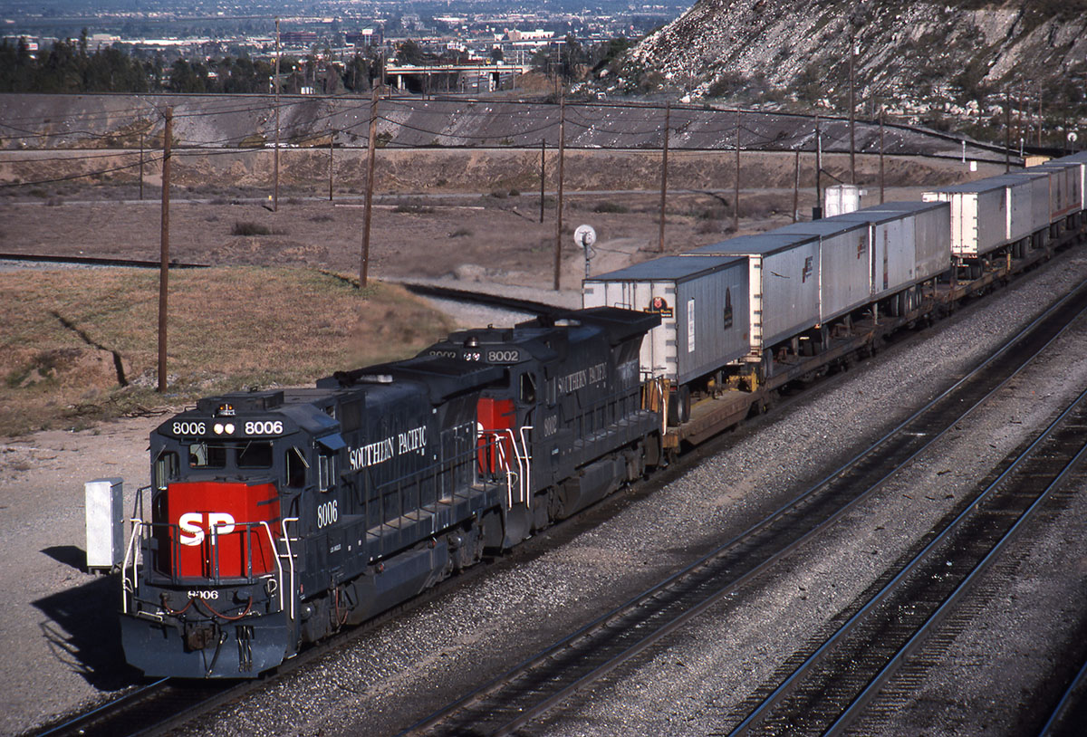 Back when GE B39-8’s were front-line power on the SP, they were used system-wide on expedited trains. The first group, 8000-8039, arrived in September, 1987.