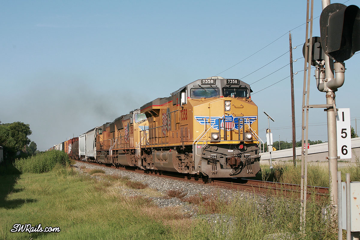 As the UP likes to run the QEWWC heavy, over 12,000 tons regularly, you’ll expect to see a 2 unit DPU on the rear.