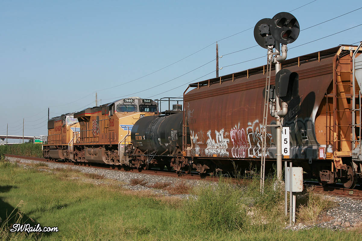 The QEWWC is a daily priority manifest between Houston and Southern California. The primary traffic on this train is petrochemical products, primarily chemical tank cars and covered hoppers with plastic pellets. The balance of traffic is general manifest.
