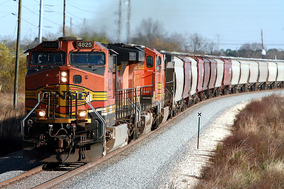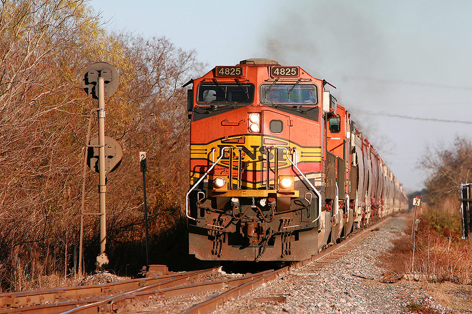 There had been very little scanner traffic the afternoon of Dec. 30, 2007, so when I heard the DS tell BNSF 4825 ( Empty Grain symbol 9GP31C 29) that he’d see one at Sugar Land, I figured that would be my best chance to get a shot or two before the day ended.