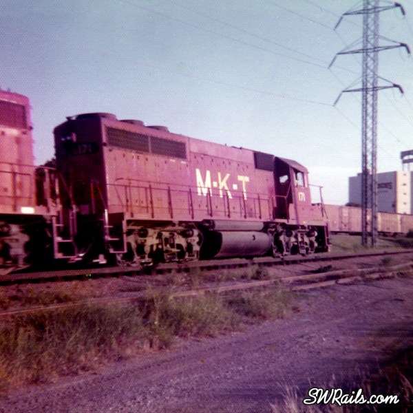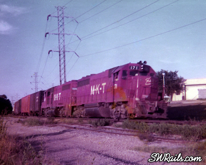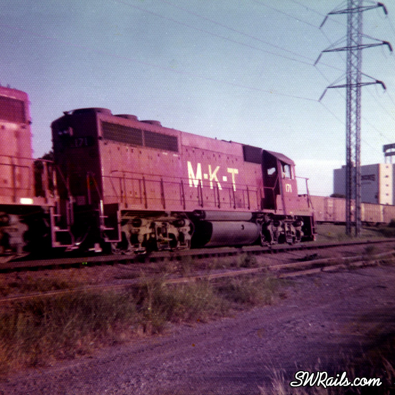 Two Katy GP40’s, 171 and 221, are bringing a southbound manifest in from Dennison. By this point in time the Katy had already started re-painting its fleet into the John Deere scheme, so I was glad to get a matched set in the red scheme.