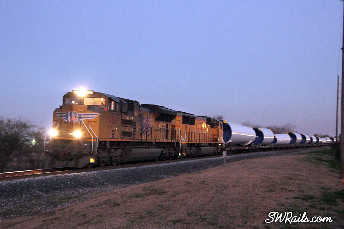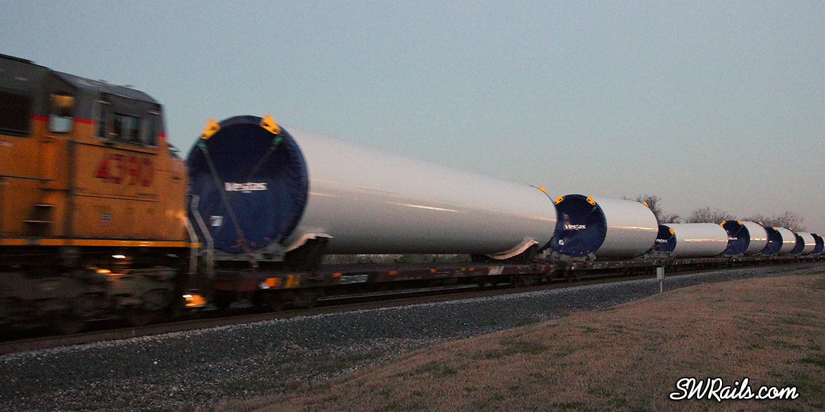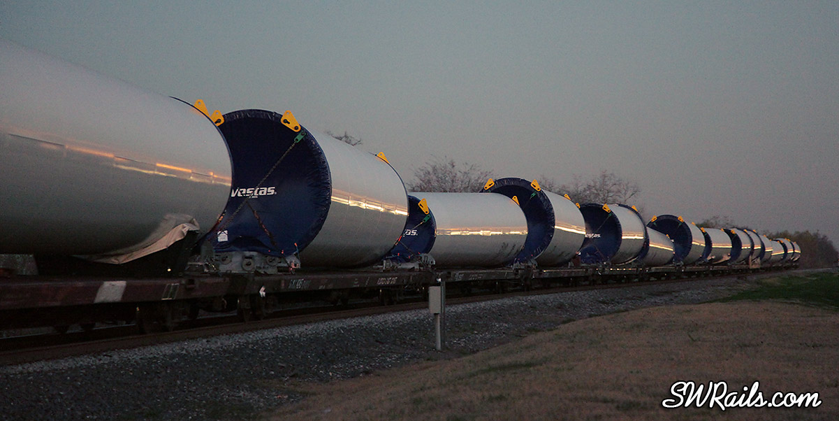 This did not come out of the Port of Houston, the symbol for this train is SNOCFW-18 out of the Port of New Orleans. We are loading Blades in the Port of Houston for Vestas, next train with the blades is expected to depart Monday night or Tuesday morning…Symbol for the outbound blade train will be SPTCFW-24