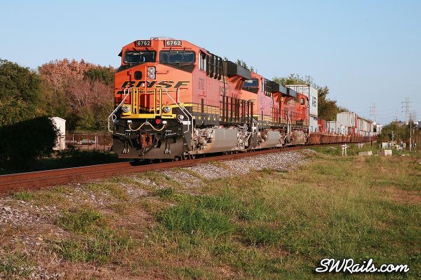 I was on my way to a wedding this past Saturday afternoon when I came across this BNSF intermodal stopped short of Central Street (near MP 7 on UP’s Strang sub) in southeast Houston.