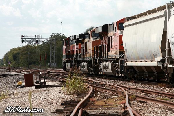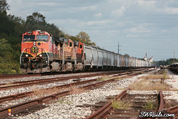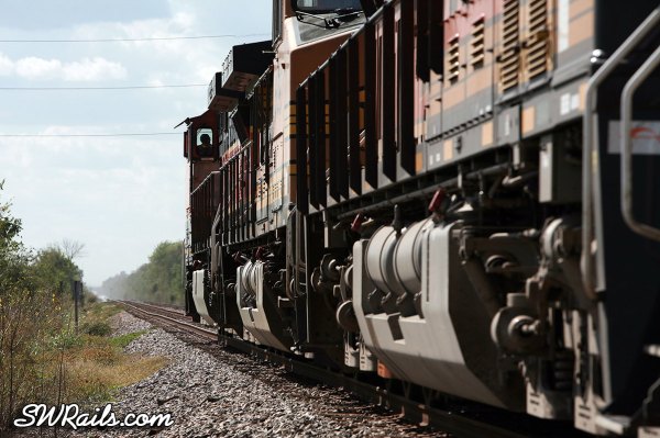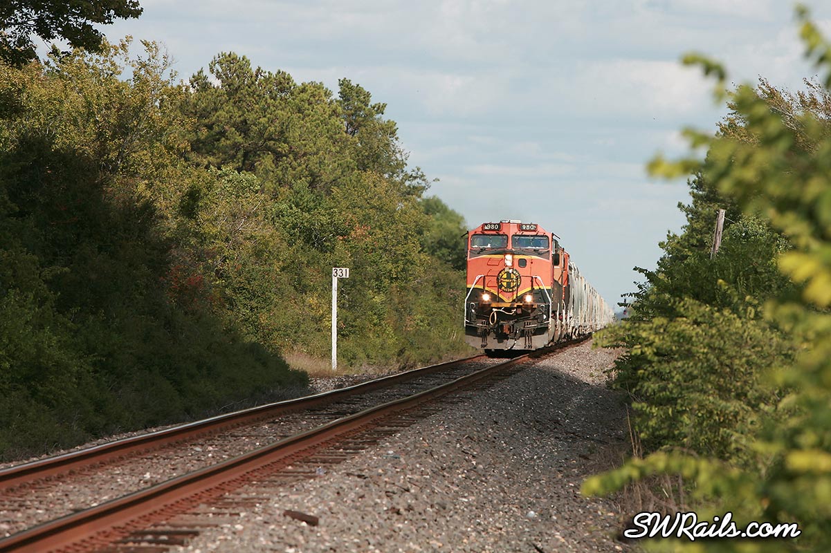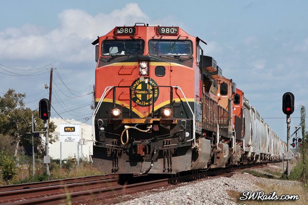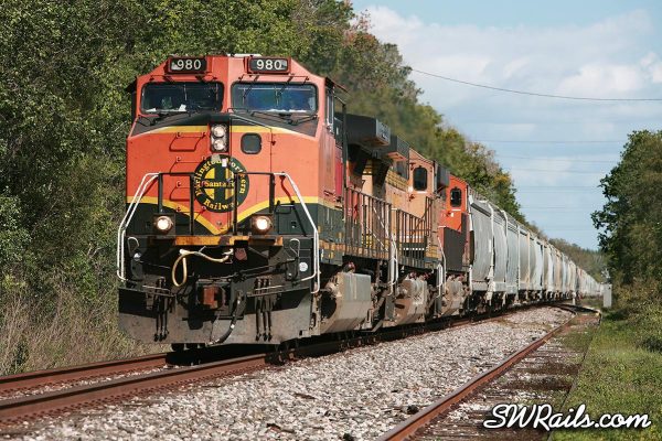 When we left off, BNSF 980 was at Dayton Junction, where UP’s Baytown branch joins UP’s Lafayette sub mainline at Dayton, TX. I decided to follow this train back to Houston because I don’t get to see many BNSF H1 motors leading.