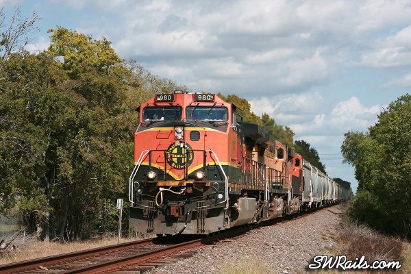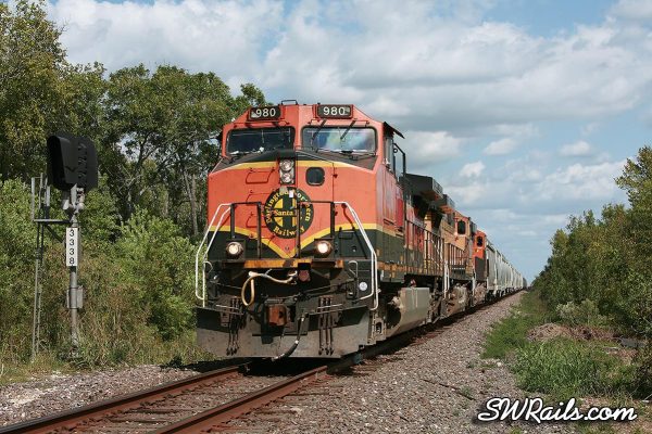 Back to the BNSF 980. I caught up to it again just west of Sheldon, MP 345.