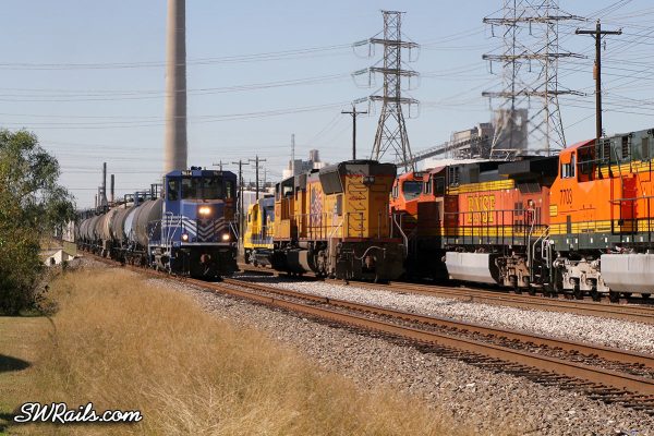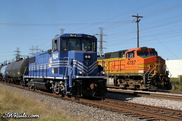 Approaching Pasadena Junction, the 9614 encounters UP and BNSF power being hostled.