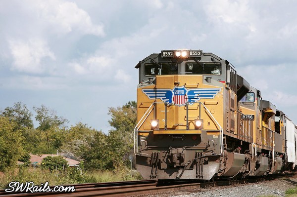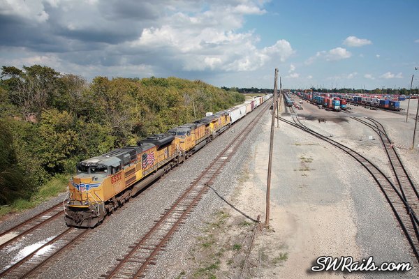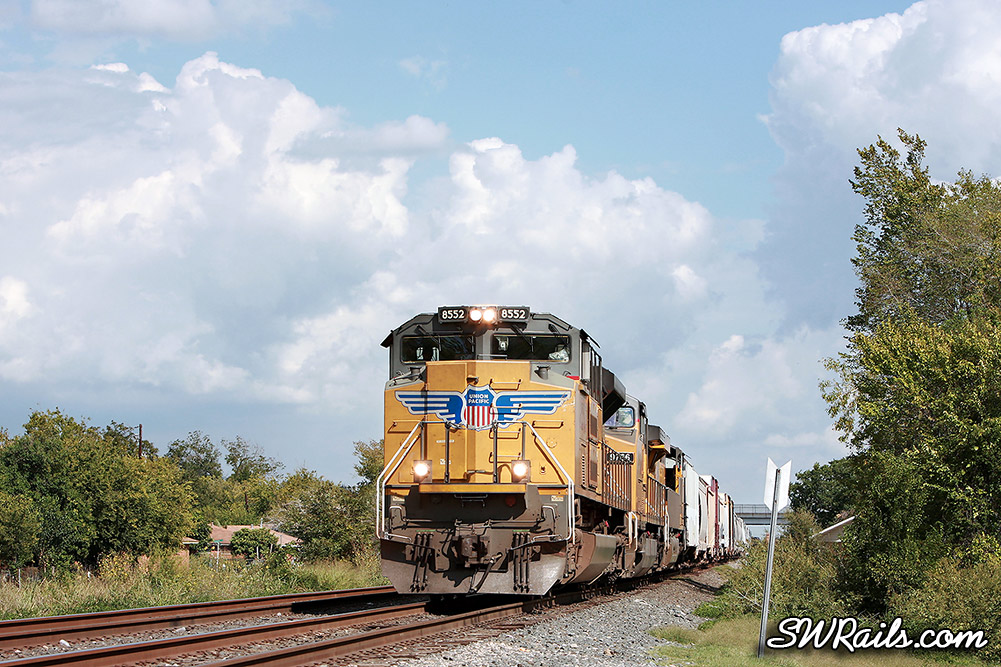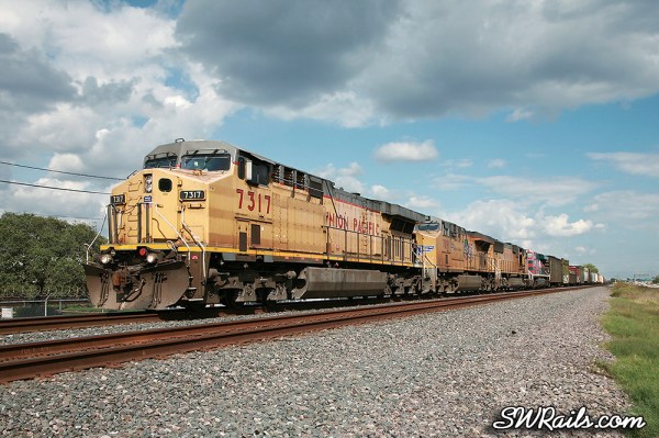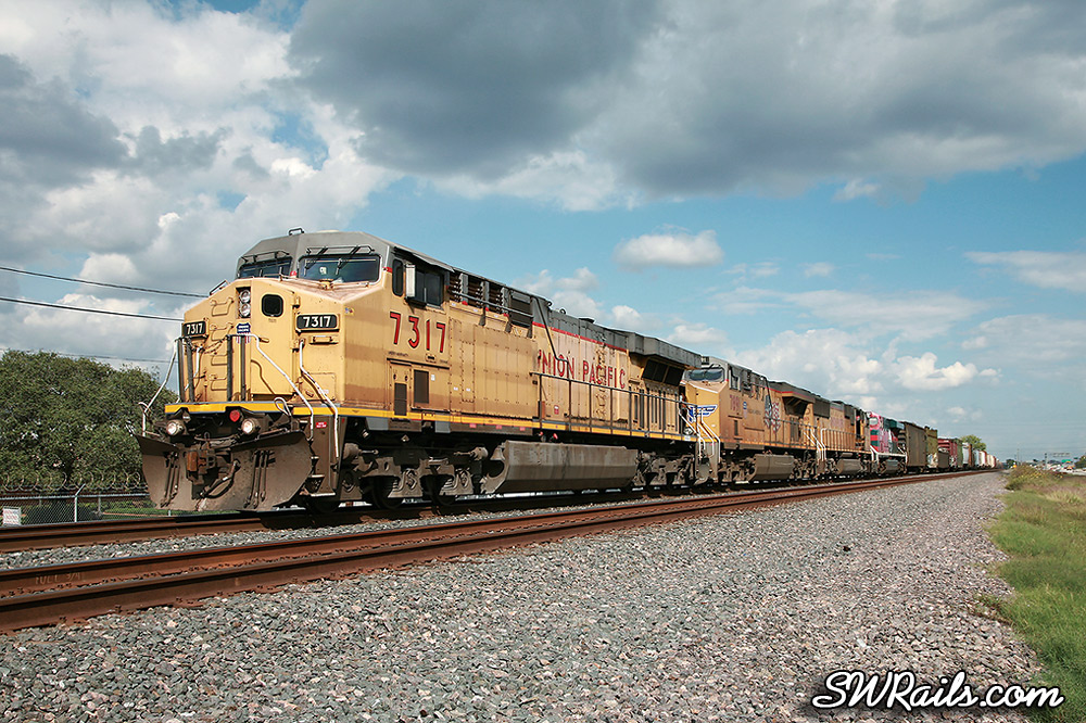As I arrived at the South Post Oak grade crossing, I saw UP 7317, a MEWEY (Manifest Englewood – East Yard train getting re-crewed at Heacker.