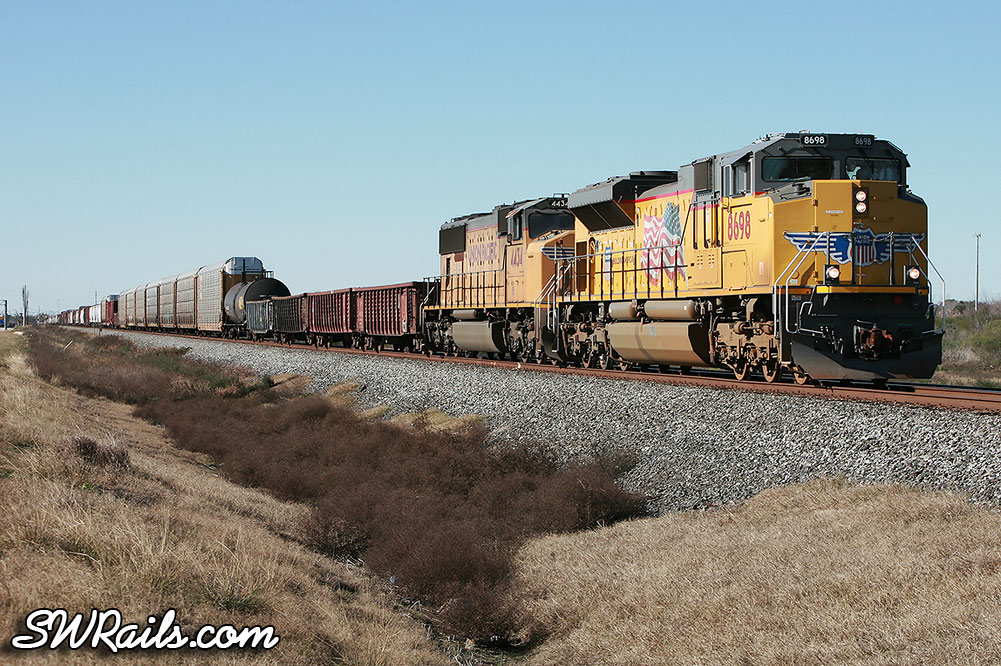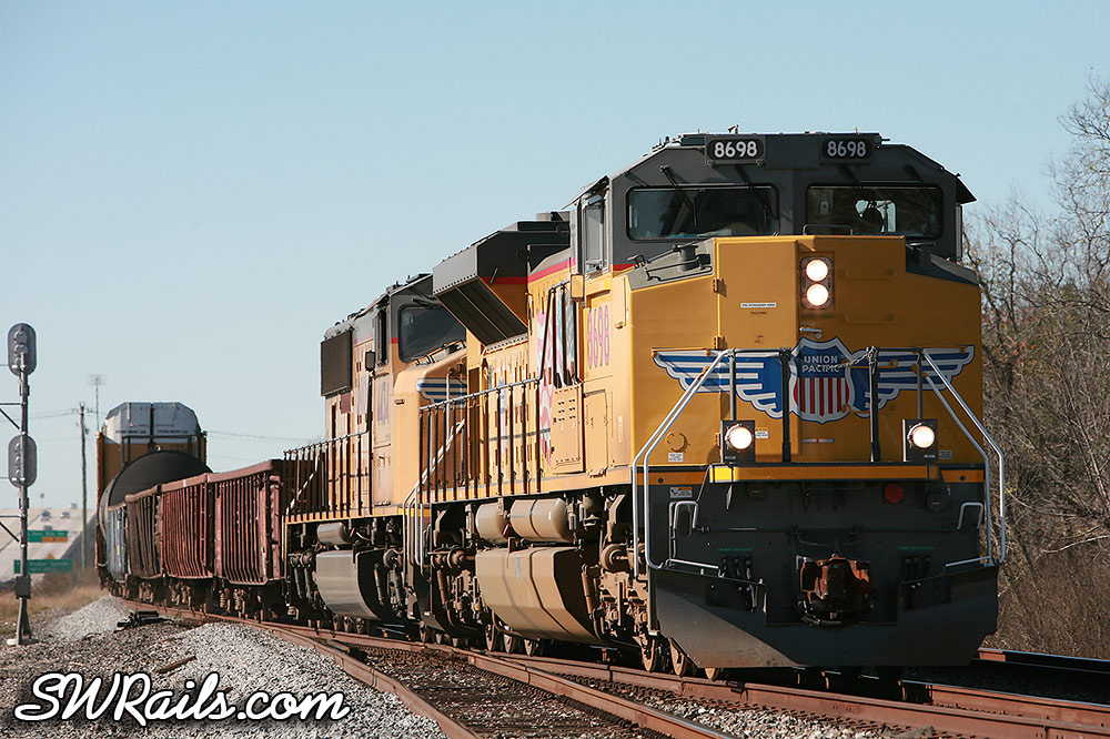 I flipped the radio on a bit before mid-day today, just to see how much traffic might be running on UP’s Glidden Sub. Within 30 seconds, the DS tells UP 8698: “I’m ready for you at the east end of Sugar Land.”*