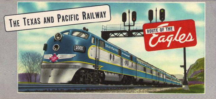 Missouri Pacific’s premier passenger train was the Texas Eagle, trains # 1 and #2, operating daily between St. Louis and all over Texas.  I know, “All over Texas” isn’t a destination. That’s the point. You could buy a ticket from St. Louis to Laredo, Houston,  or El Paso and you’d leave St. Louis on the same train.
