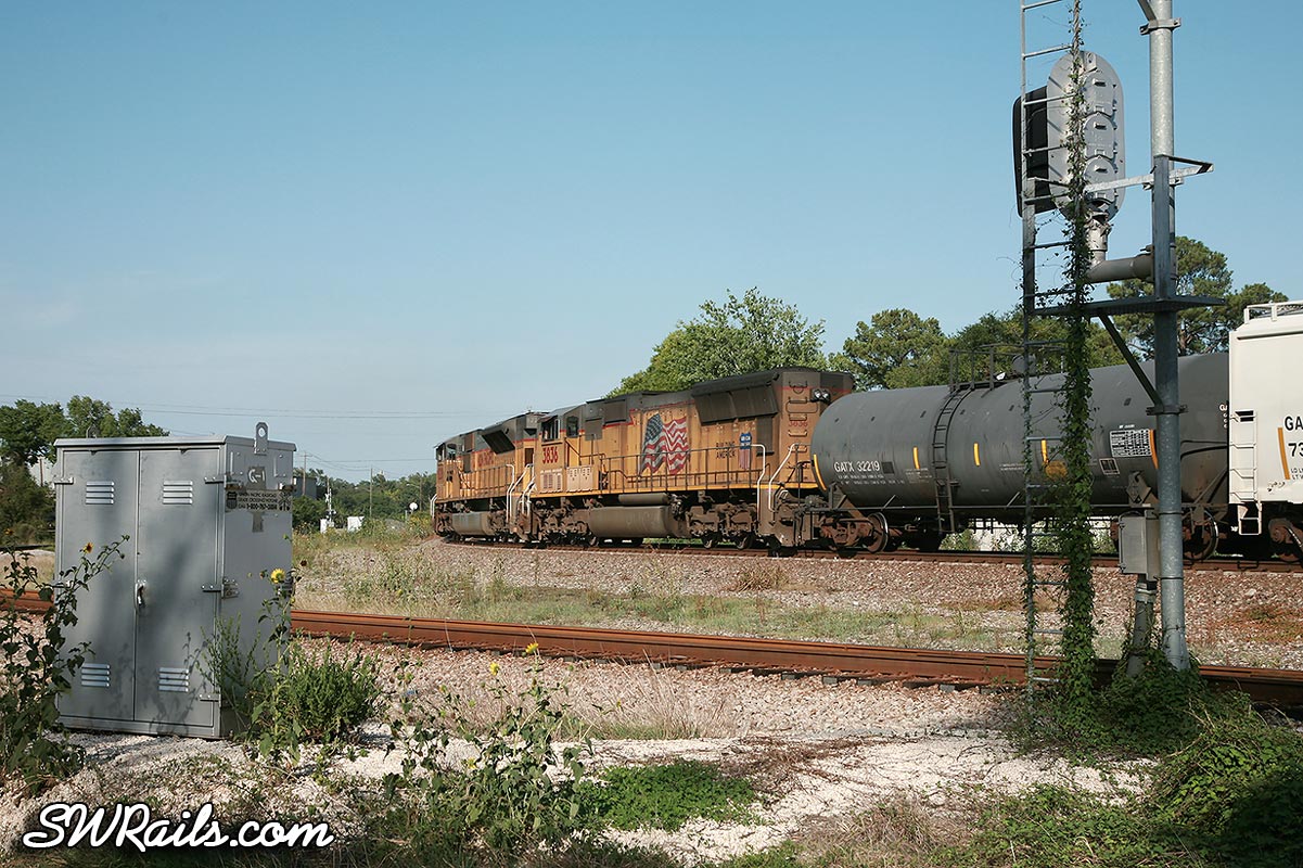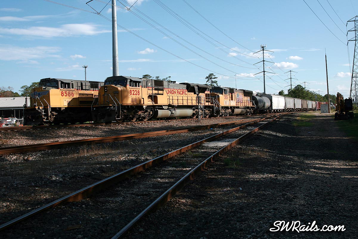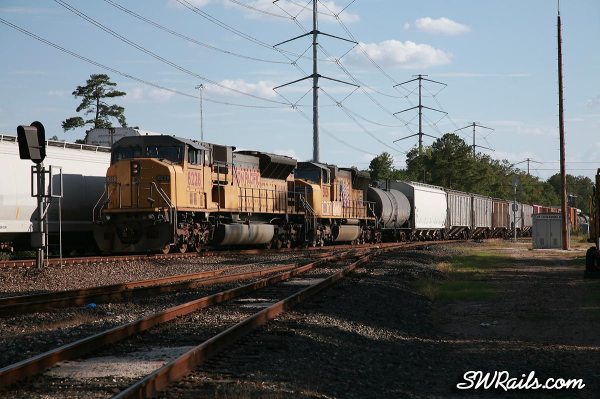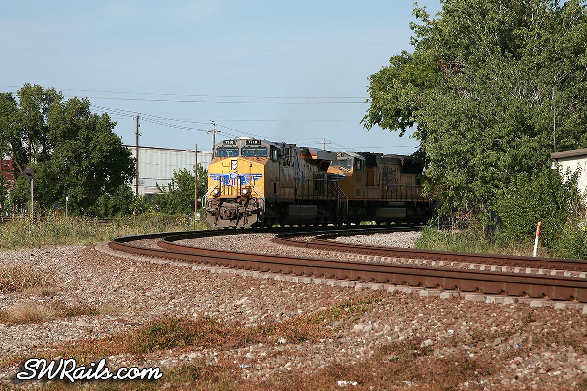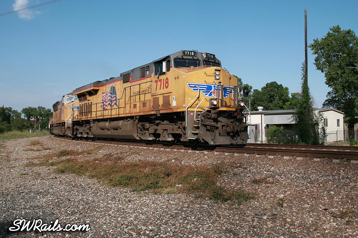 Union Pacific 7718 leads the QEWWC train in Houston, July 17, 2011