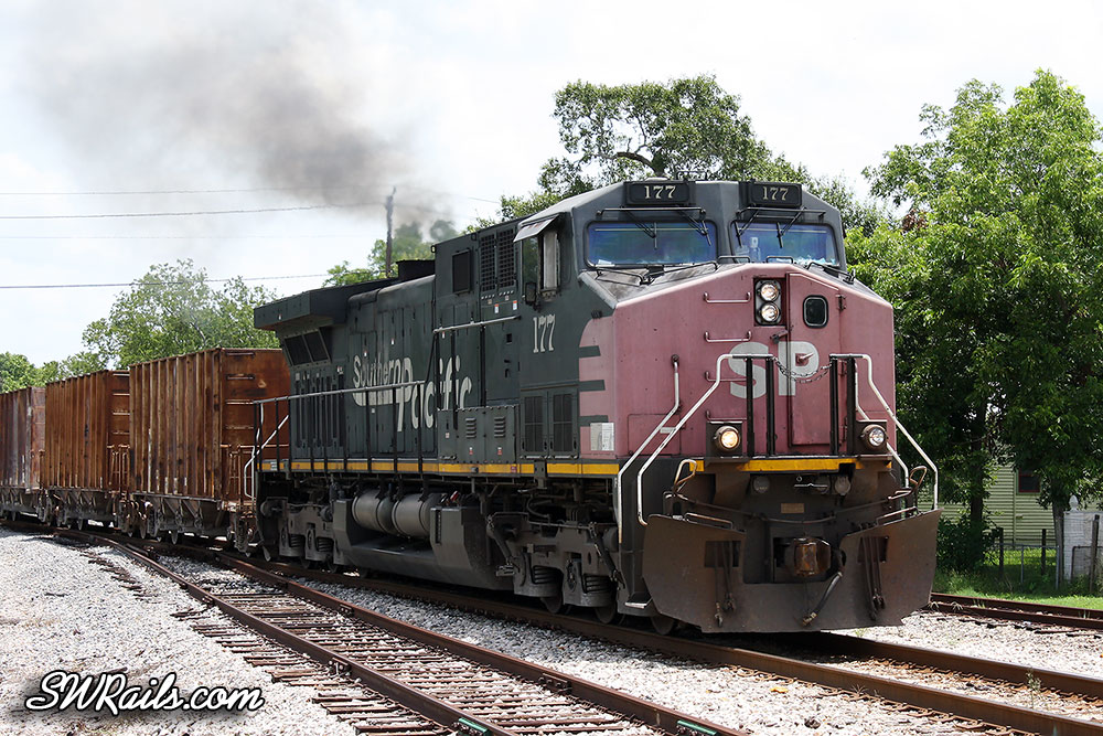 He returned to Abilene two Mondays ago, July 16th, about 11:30 A.M. Shortly after noon, he called me to tell me that he had just seen a northbound rock train on the BNSF, several miles south of Sealy. Power was one unit, an un-patched Southern Pacific locomotive! Did I mention he’s a hard-core SP fan that’s quite bothered by the fact that he was born in 1990, way too late to properly experience the SP?