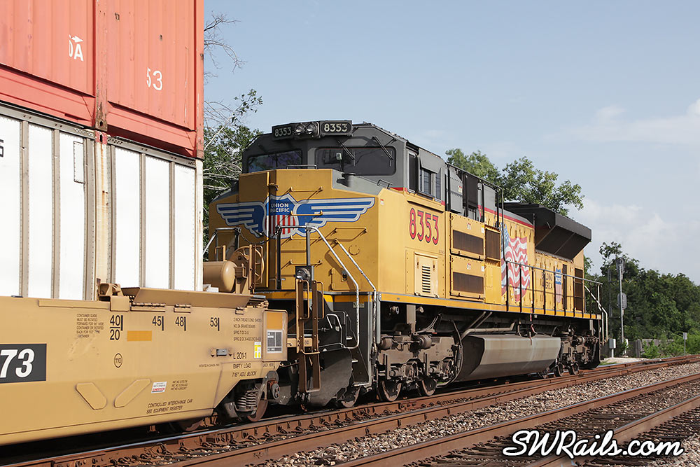 We were in Stafford (MP 20) when the detector at MP 15.6 announced a train. Not knowing whether it was an eastbound going away, or a westbound coming toward us, I took the safe course and set up at the west switch of Missouri City (CP SA019). It was the right call, as a headlight came into view. Shortly thereafter, at 3:44 PM, UP SD70ACe 8365 blew by with an IHOSA intermodal train.