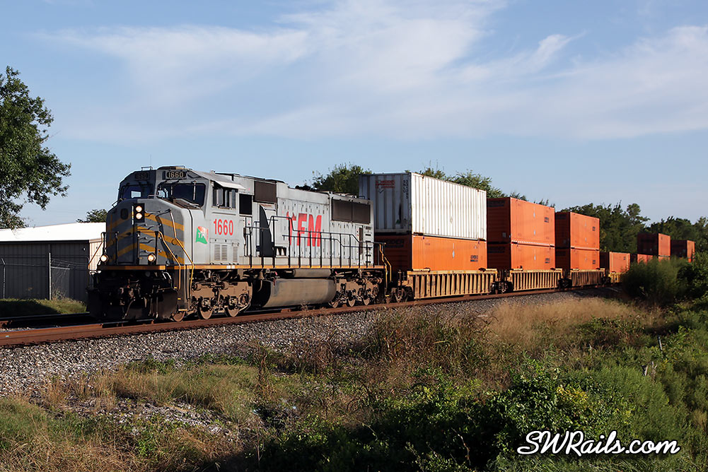 TFM SD70MAC 1660 was the sole power on this eastbound KCS intermodal that I caught at 6:15 PM at the Willowbend grade crossing, MP 374.83 on the Terminal subdivision.