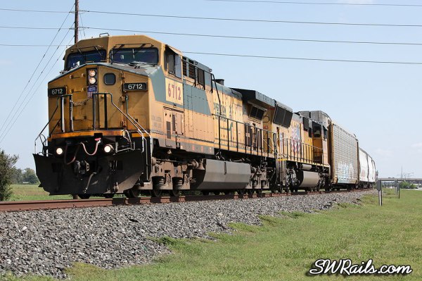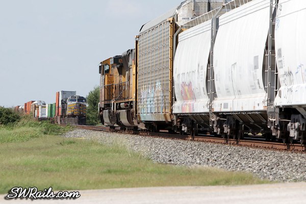Shortly after setting up, UP 6712 leading the MEWEG-04 (Englewood – Eagle Pass) came into view. Had I known an ex-C&NW patch unit was the leader, I would have opted for a more broadside view. Hindsight is always 20/20, isn’t it?