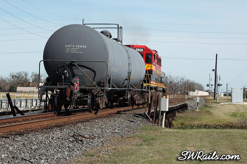 Here’s the going-away view of the KCS local as it crosses Oyster Creek en route to do its work in Houston.