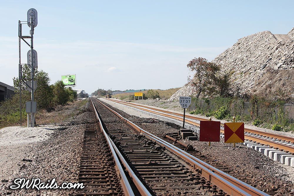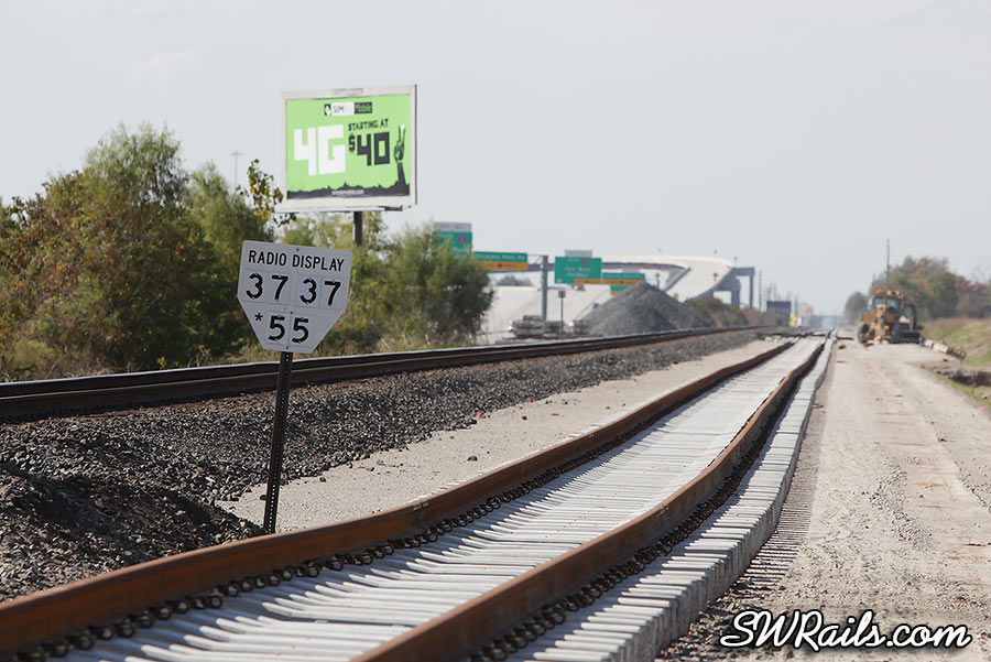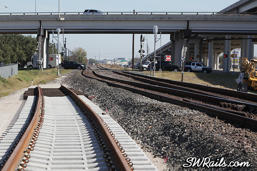 A single crossover is being installed about 1/4 mile west of CP SA014.  Harrisburg sub traffic, primarily BNSF, will use this crossover to    access the new main.