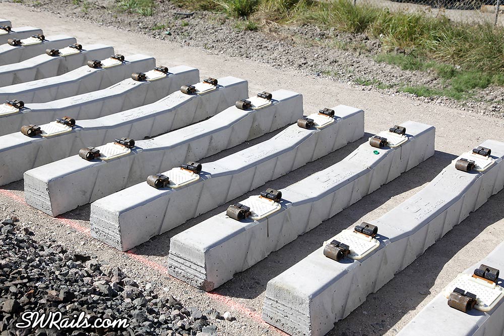 Concrete crossties are in place in this 10/19/2012 view, looking west from Heacker.