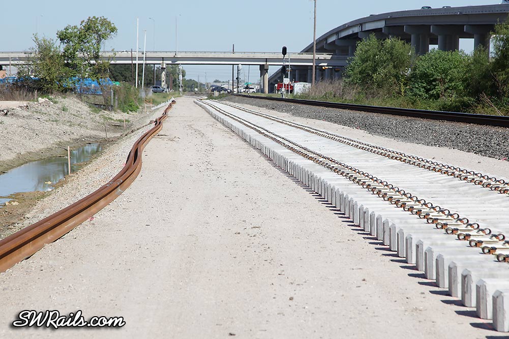 I’ve been remiss in keeping you up to speed on Union Pacific’s Glidden Sub double-tracking project. It’s at the far east end of the Glidden subdivision. Phase 1 of this capacity expansion effort is between CP SA014 (Heacker) and CP SA019 (Missouri City).