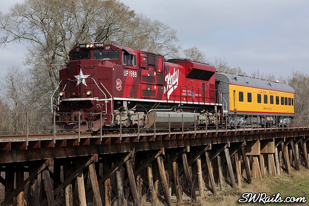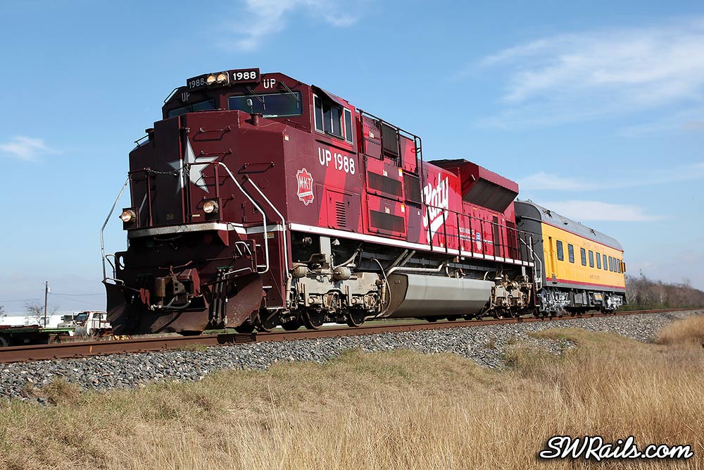 Sometimes things just work out no matter how badly the deck is stacked against you. Case in point is my 2/5/2013 chase of UP 1988, UP’s Katy heritage locomotive, on an SSPSA-05 (Special Spring-San Antonio) passenger special.
