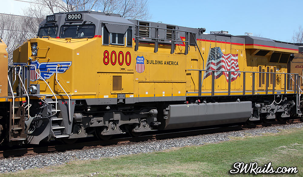 The third unit was looking particularly good. UP 8000 is an ES44AC that was built in July, 2012. Too bad it wasn’t leading.