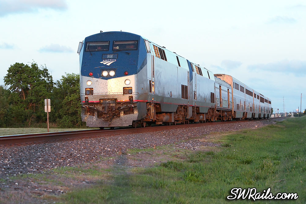 Assuming an on-time departure from the Houston depot, Amtrak #1 will pass through Stafford about 7:25 PM. Julie advised that #1 did in fact depart on time at 6:55 PM. Nevertheless, 7:25 PM came and went, with no sign of the Sunset Limited.