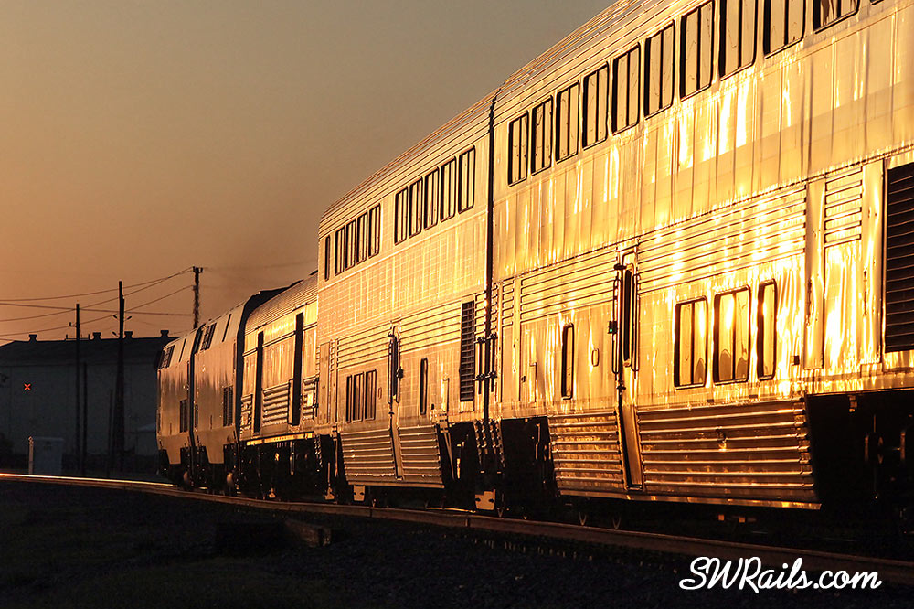 Once I mustered the courage to look at the shots on the camera LCD, I was amazed. Amazed at how nice the shots were, but even more amazed that I just happened to be in the right place at the right time to capture the dramatic sunset glint light bouncing off of the train.
