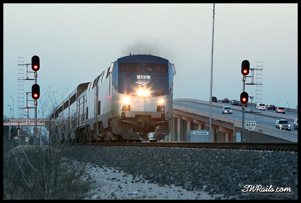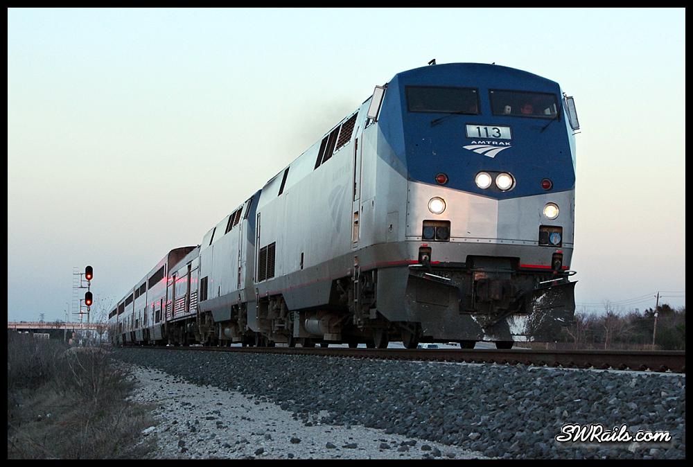 I drove a few miles west to Heacker and set up just west of the signals there. A few minutes later, AMTK 113 came into view at 7:26 PM.