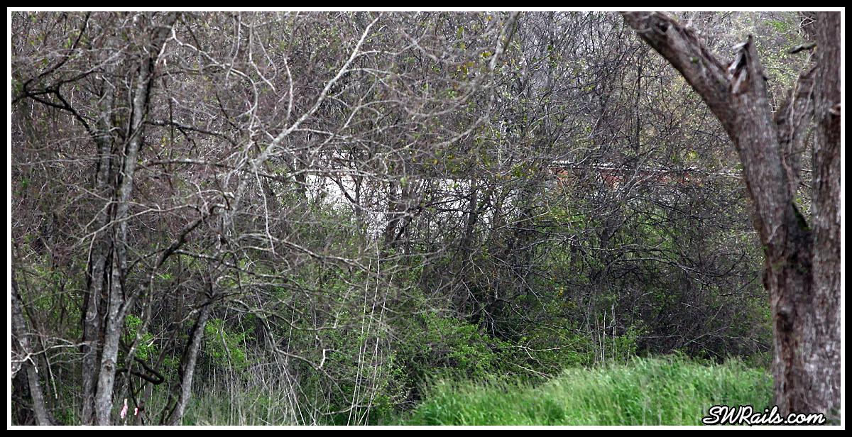 Driving west a bit, I was able to see the head end from the parking lot of a little Mexican restaurant. Like I said, the brush is pretty thick along here.