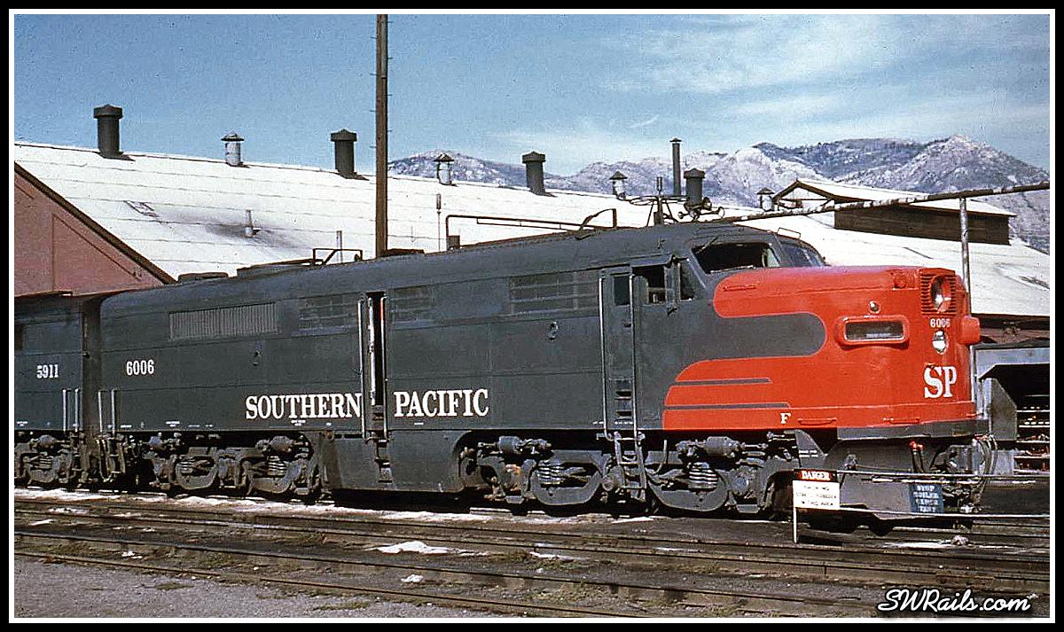 Since I posted it, I came across 2 more images of this same locomotive that were taken about 4-5 years apart in Ogden, UT. What struck me as an amazing coincidence, maybe even a Festivus miracle, was that the images were taken not only in the same town, but in virtually the exact same location at the SP’s Ogden roundhouse.