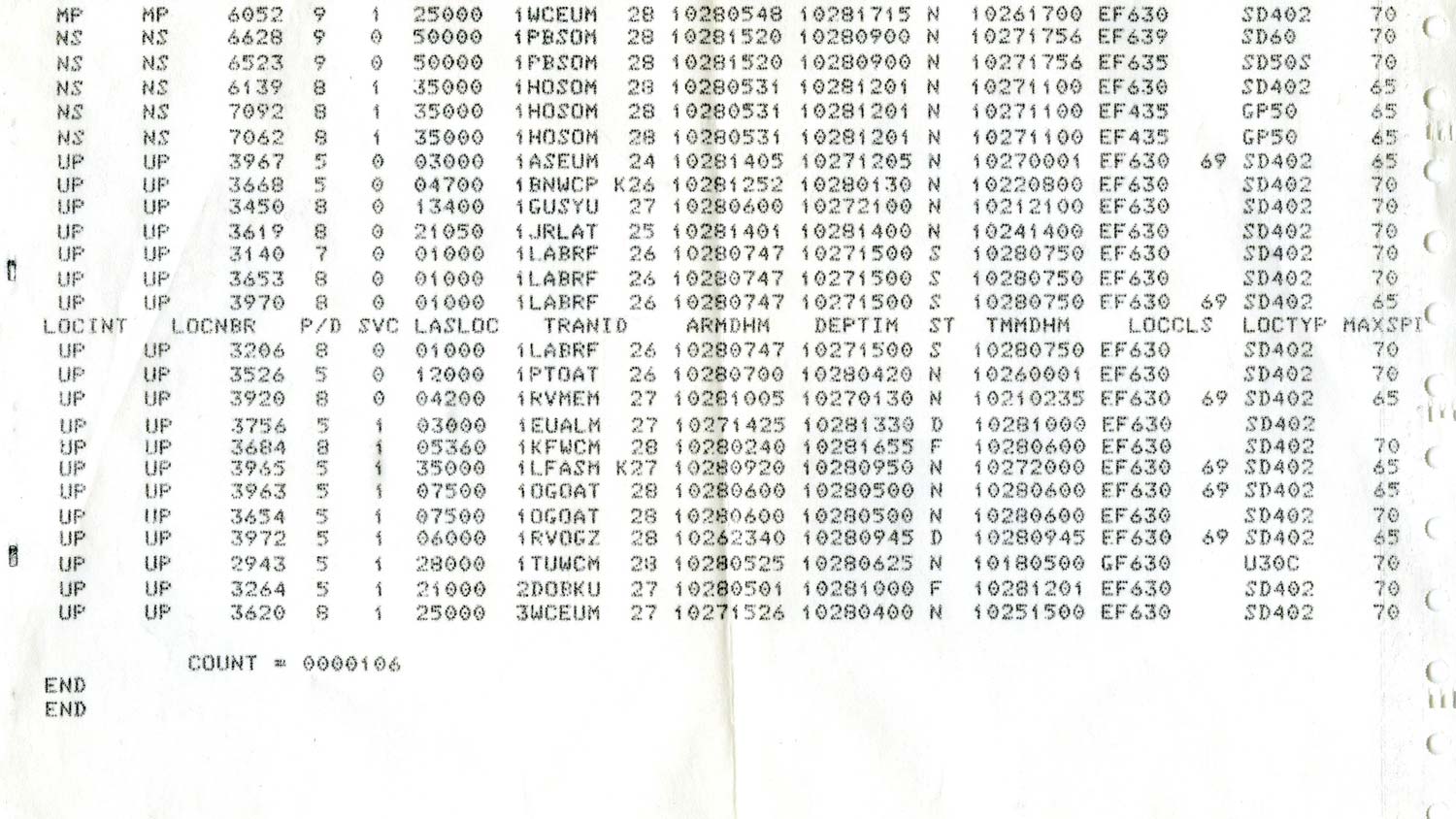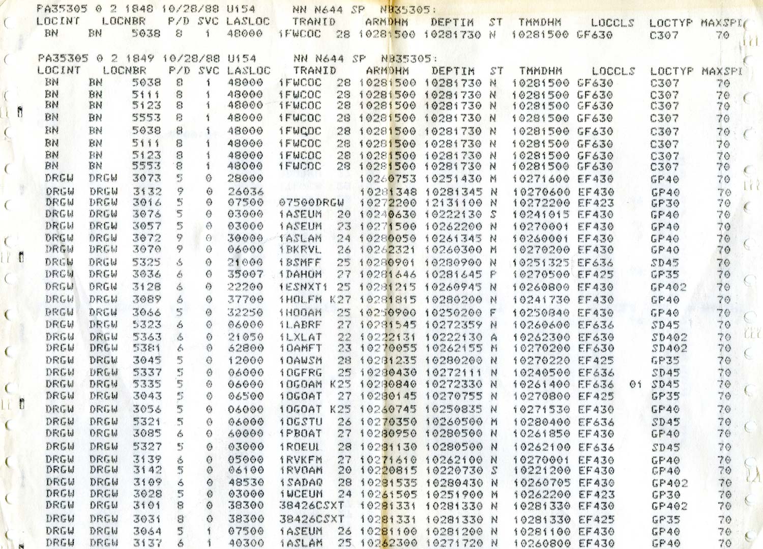 Allow me to serve up a portion of SP memorabilia suited for the hardest of the hard-core fan: a SYSON report from 10/28/88. SYSON was short for system-on, a list of all off-line power that was on the SP.