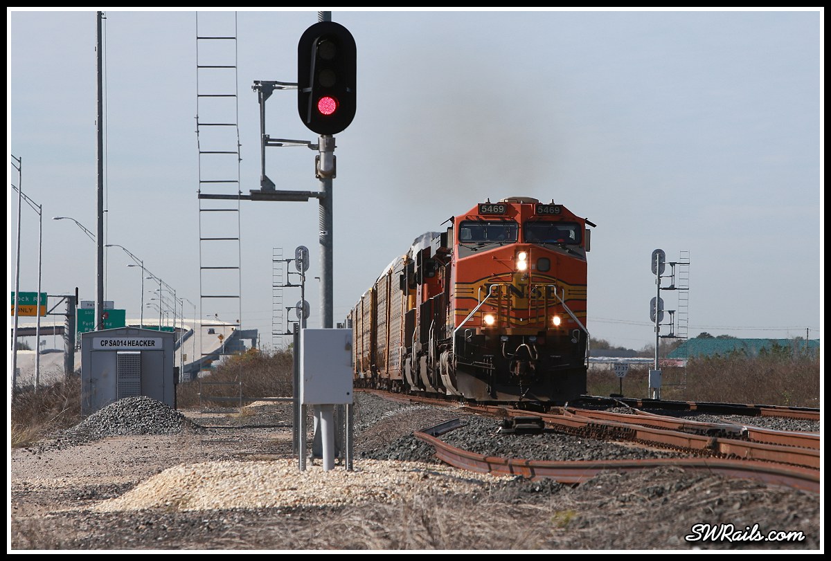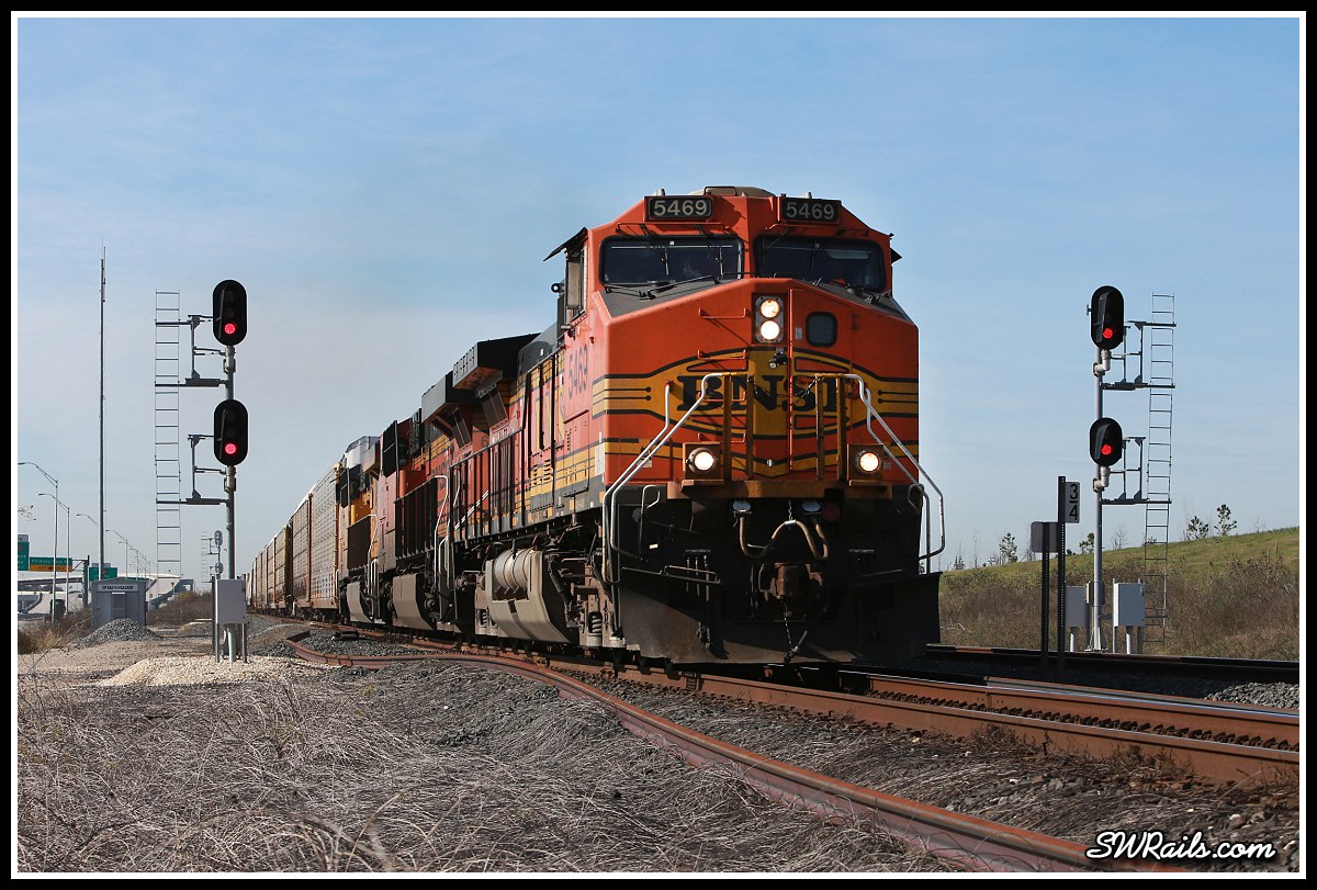 BNSF C44-9W 5469 on UP freight train MKBHO at Heacker TX