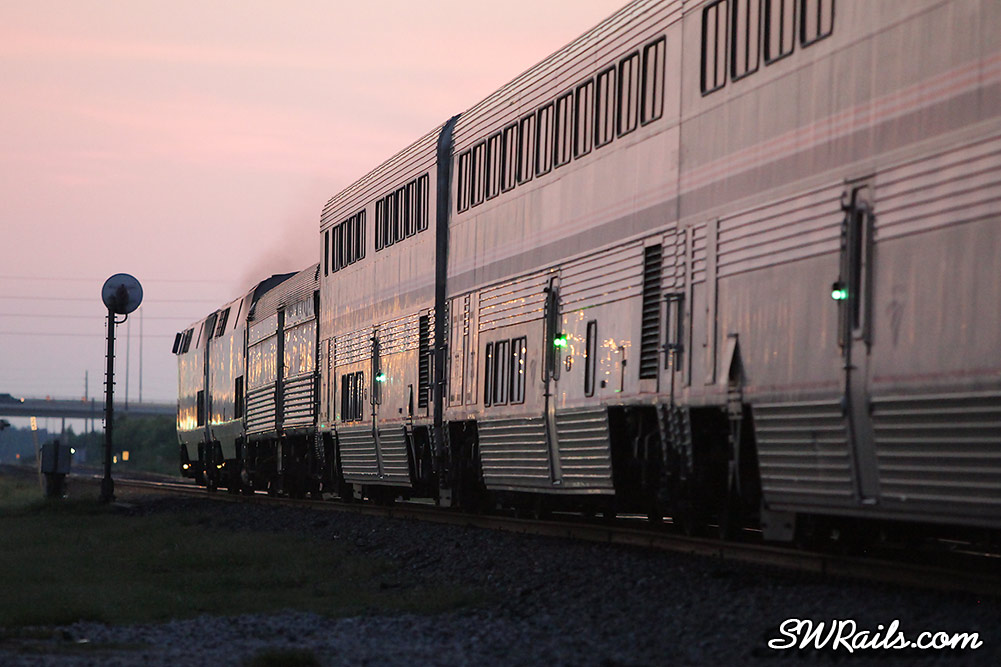 My late afternoon routine of photographing Amtrak #1 as it passes through the Sugar Land area might be on hiatus until next spring. It’s just too dark at 7:30 PM, the train’s approximate time through here.