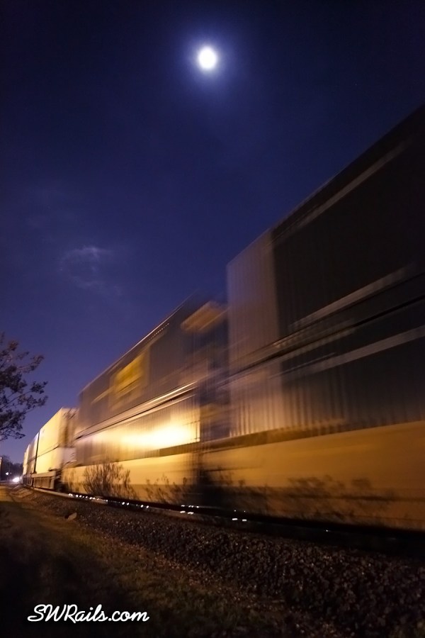 I found a spot near the signal hoping to capitalize on some light spilling over from the adjacent Nalco Chemical Plant. Within two minutes, the westbound showed up. Here goes nothing…