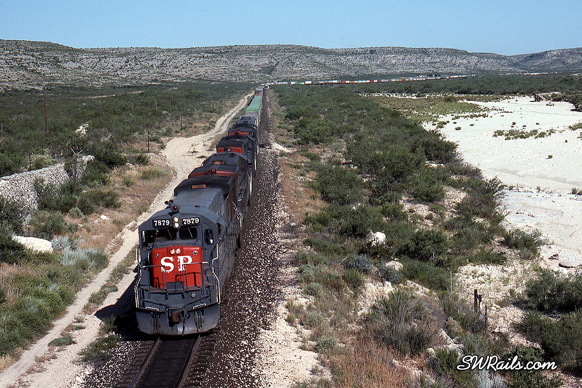 El Paso is MP 827 of the Sunset Route. Sanderson is 297 miles to the east at MP 506. Travel another 321 miles east and you’ll be in San Antonio.